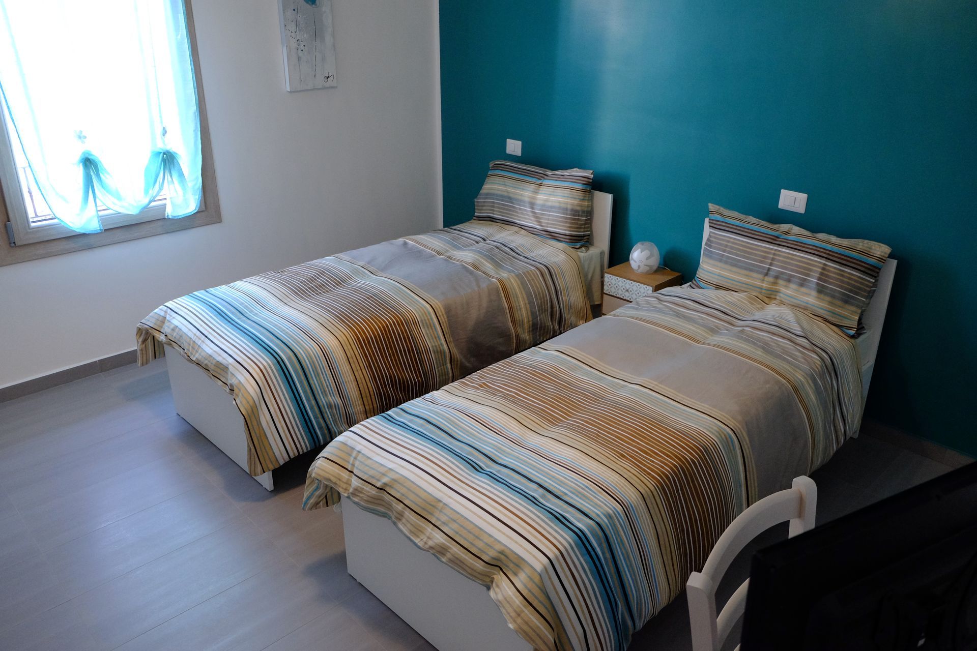 Benvenuti nella nostra accogliente camera matrimoniale/doppia con letti singoli, ideale per un soggiorno rilassante e confortevole. Questa sistemazione, con una superficie di 14 m², è perfetta per chi cerca tranquillità e comodità.