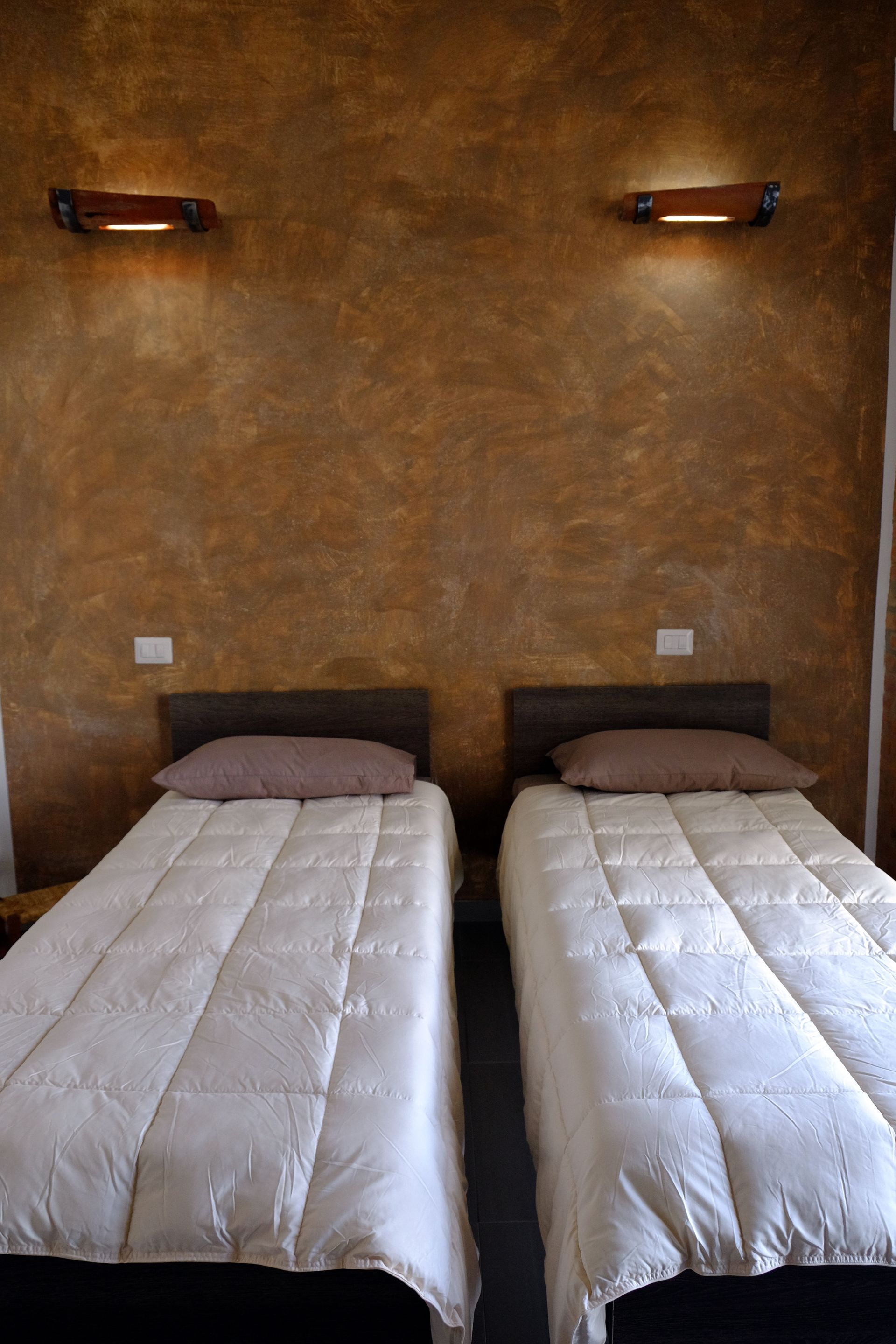 Le nostre camere sono rifugio di comfort e tranquillità, progettate per offrire un soggiorno piacevole e rilassante. Ogni stanza è dotata di moderni comfort come aria condizionata, TV a schermo piatto e bagno privato completo di set di cortesia. Con vista sul giardino o sul cortile interno, potrete godere di un ambiente sereno e accogliente. Le sistemazioni sono pensate per soddisfare ogni esigenza, offrendo inoltre accesso indipendente, armadi spaziosi e la scelta tra letti singoli o matrimoniali, assicurando un soggiorno personalizzato e confortevole per ogni ospite.